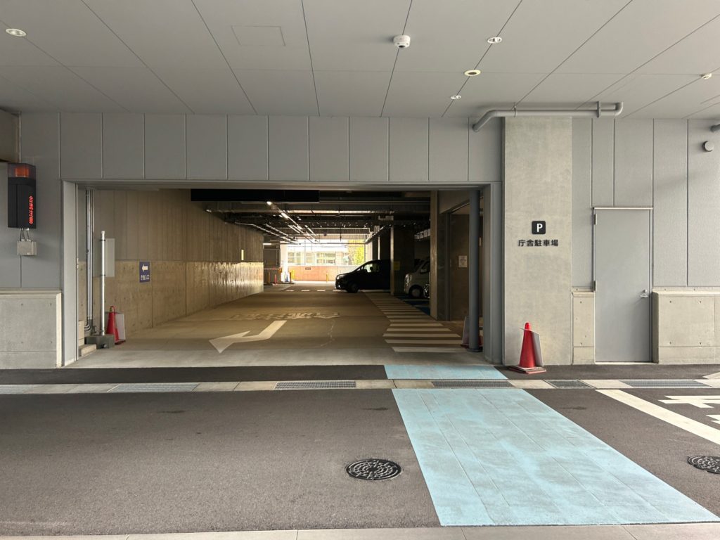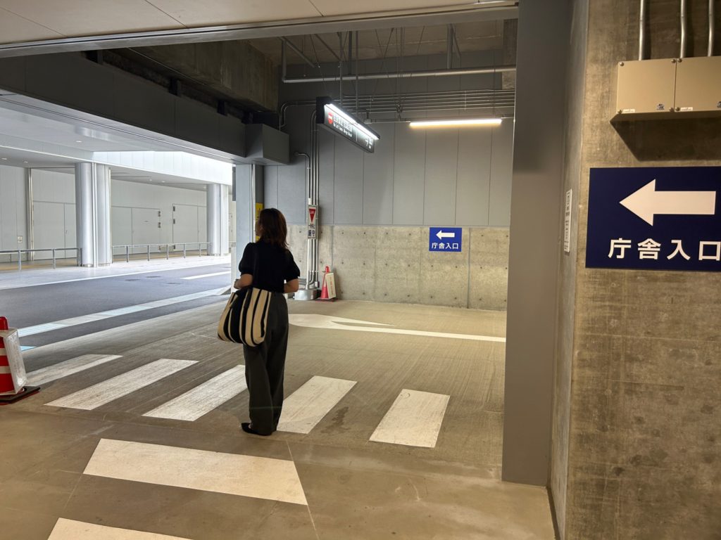 駐車場の1〜3階は連絡通路を通じて、市役所に繋がっているのでそのまま入ることができます。