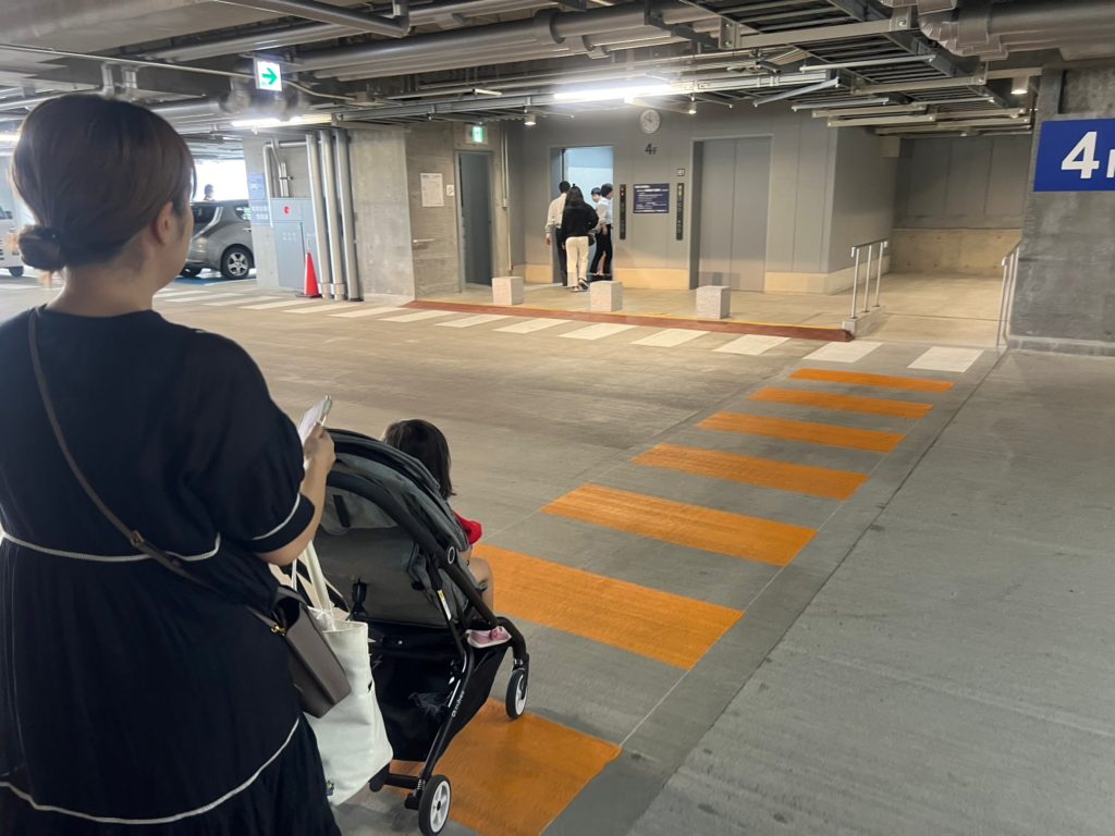 エレベーターを待っている間、すぐ側を車が通るのでお子さんから目を離さないようにしてくださいね