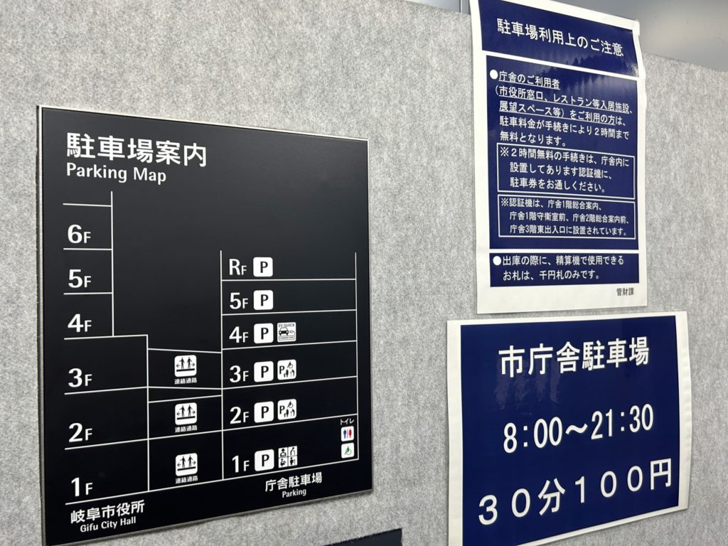 岐阜市市役所の専用立体駐車場は、庁舎の東側にあります。