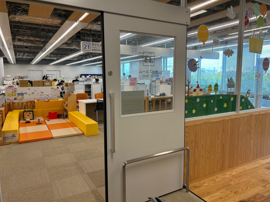 ガラス張りでキッズルーム内から相談窓口の様子が確認できるので、待ち時間に利用するのもおすすめ!
