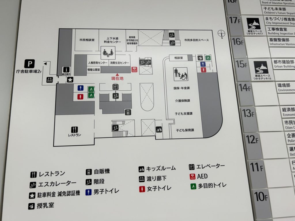 岐阜市役所内は1階から3階の各フロアに授乳室があります