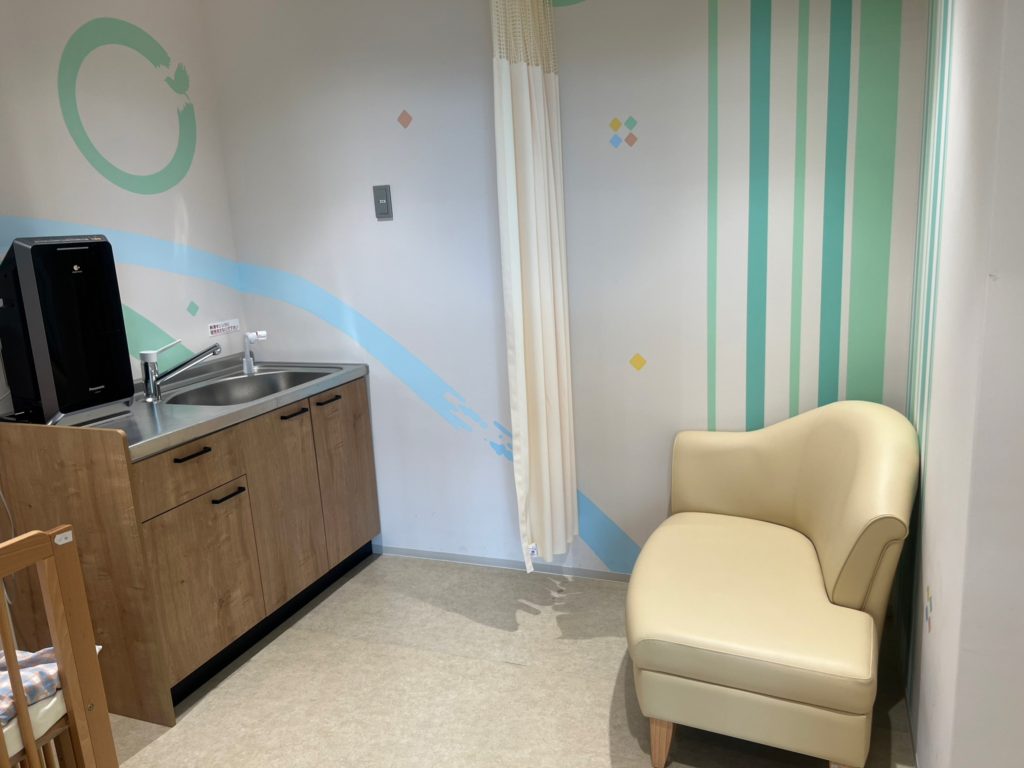 授乳室内のシンクには、熱湯栓もついているのでミルクを作る際も便利。