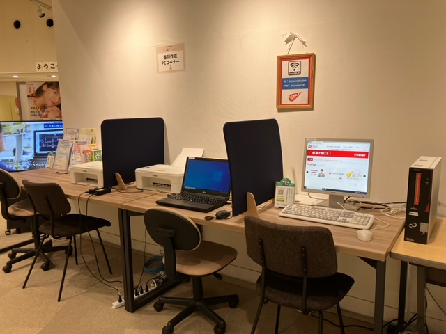 各拠点相談ブースは3箇所ずつ設けており、書類作成のパソコン貸し出し、各拠点2台ずつプリンターも準備しています。
