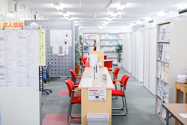 就職相談はもちろん、自己分析の相談・応募書類の添削・面接トレーニングなど「働く」に関することを応援してくれる施設です。