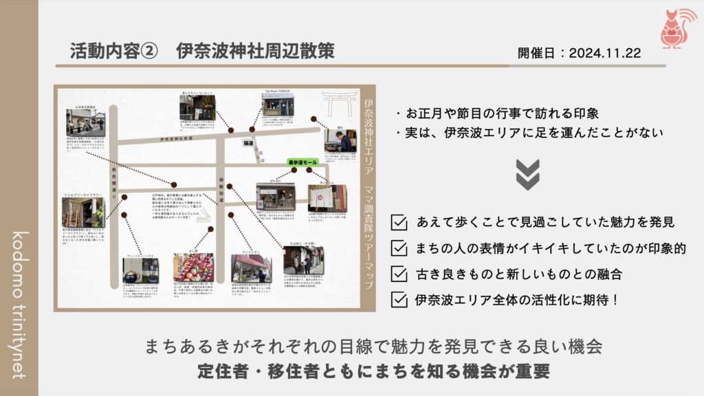 活動を通じて、子育て世代ならではの視点で地域の魅力を発信し、まちづくりに積極的に関わる可能性を再認識しました。